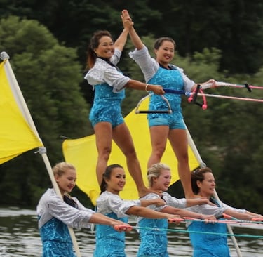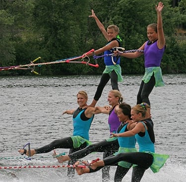 Portland Water Spectacular was formed in 1986 and incorporated in 1987 as a nonprofit organization. The team includes over 20 members with ages ranging from 5 to over 80 and includes students, full-time working people and families. The home practice site is on the Willamette River in West Linn, OR, just above the Willamette Falls. Practices are held every Sunday at 10:00 a.m. from April through October. In March, dry land practices are held at a local school gym or pool. In April, the team moves to the water and skis through the month of October.